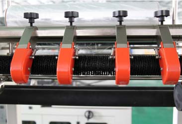 5.自動(dòng)送料,制袋長(zhǎng)度由電眼和計(jì)時(shí)器的組合自動(dòng)控制;配有廢料感應(yīng)電機(jī),可自動(dòng)卷取廢邊。